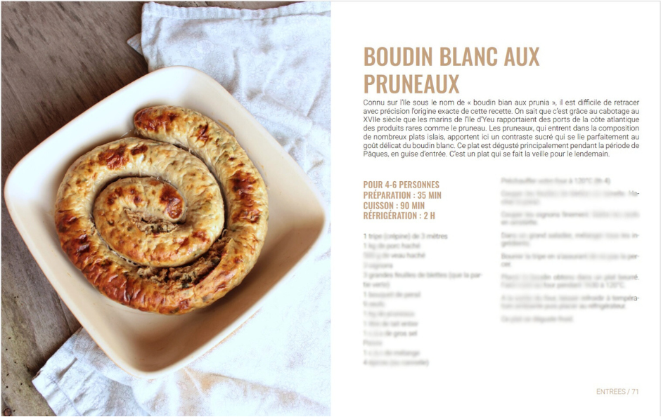 Ce livre est un hommage aux savoir-faire et aux petits secrets de cuisine qui se transmettent de génération en génération. Accompagné d’anecdotes personnelles et de photos de paysages de l’île, il vous invite à découvrir les saveurs uniques du patrimoine culinaire de l’île d’Yeu.